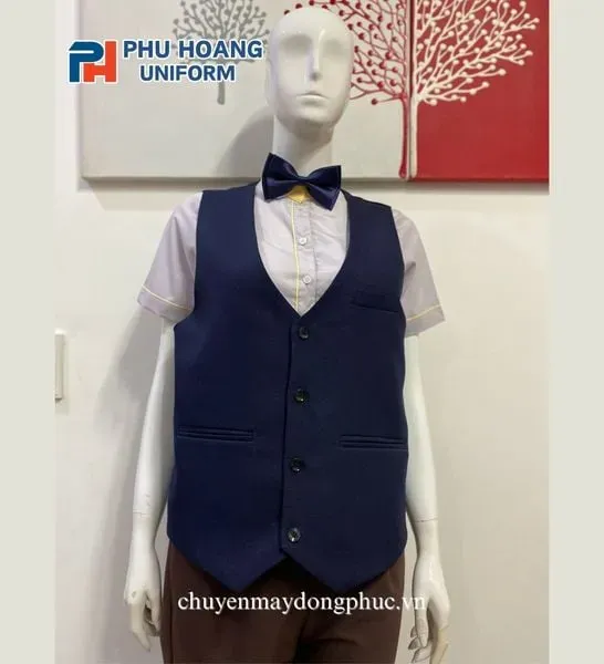 Với thiết kế đơn giản, tinh tế và màu xanh đen sang trọng, áo gile SG003 có thể phối cùng nhiều trang phục khác nhau như áo sơ mi trắng, quần tây đen, váy công sở hoặc nơ cổ. Sản phẩm phù hợp cho cả nhân viên nhà hàng cao cấp, bar, quán café, khách sạn, trung tâm hội nghị, hoặc phục vụ sự kiện. Đây là lựa chọn linh hoạt, giúp doanh nghiệp tiết kiệm chi phí nhưng vẫn đảm bảo tính chuyên nghiệp.