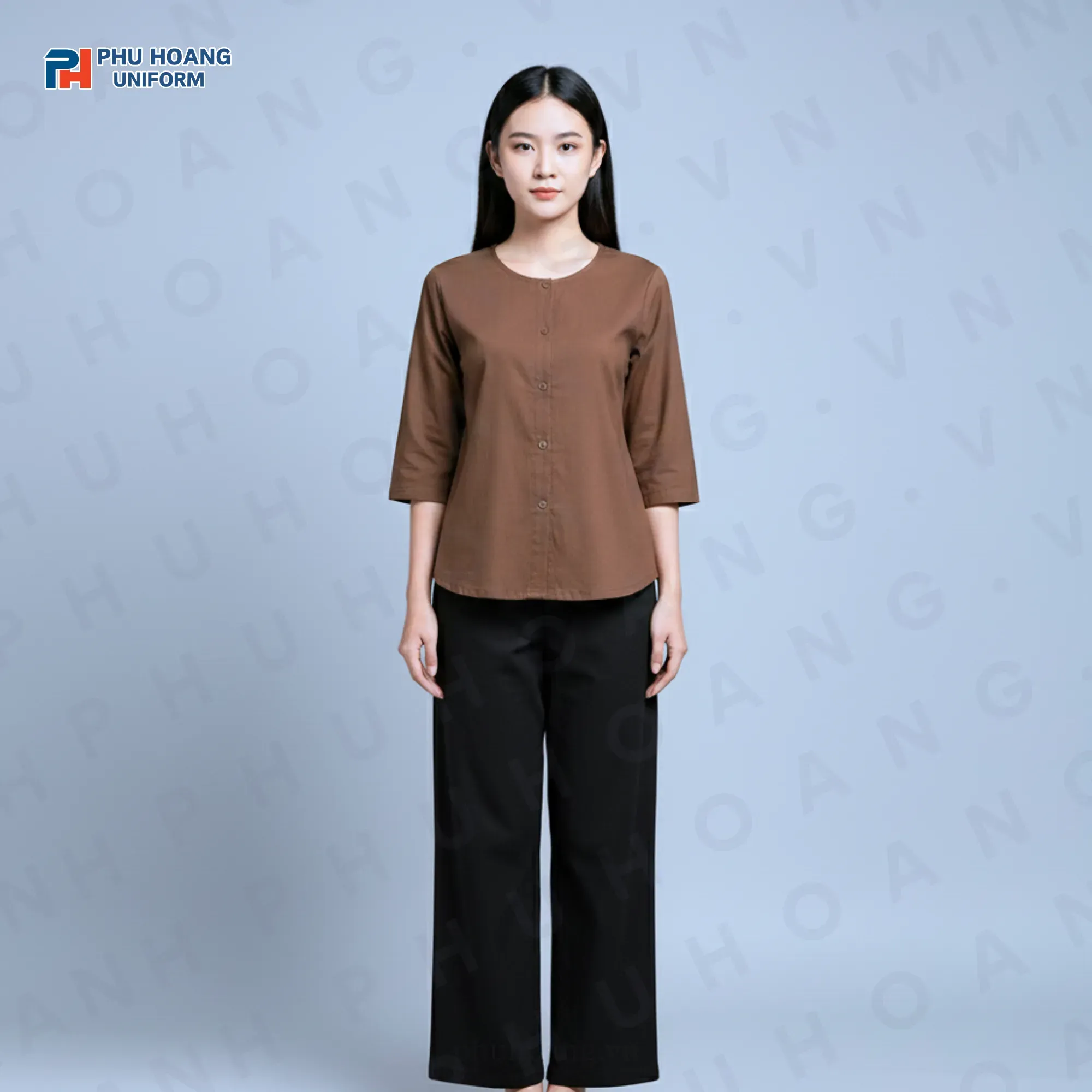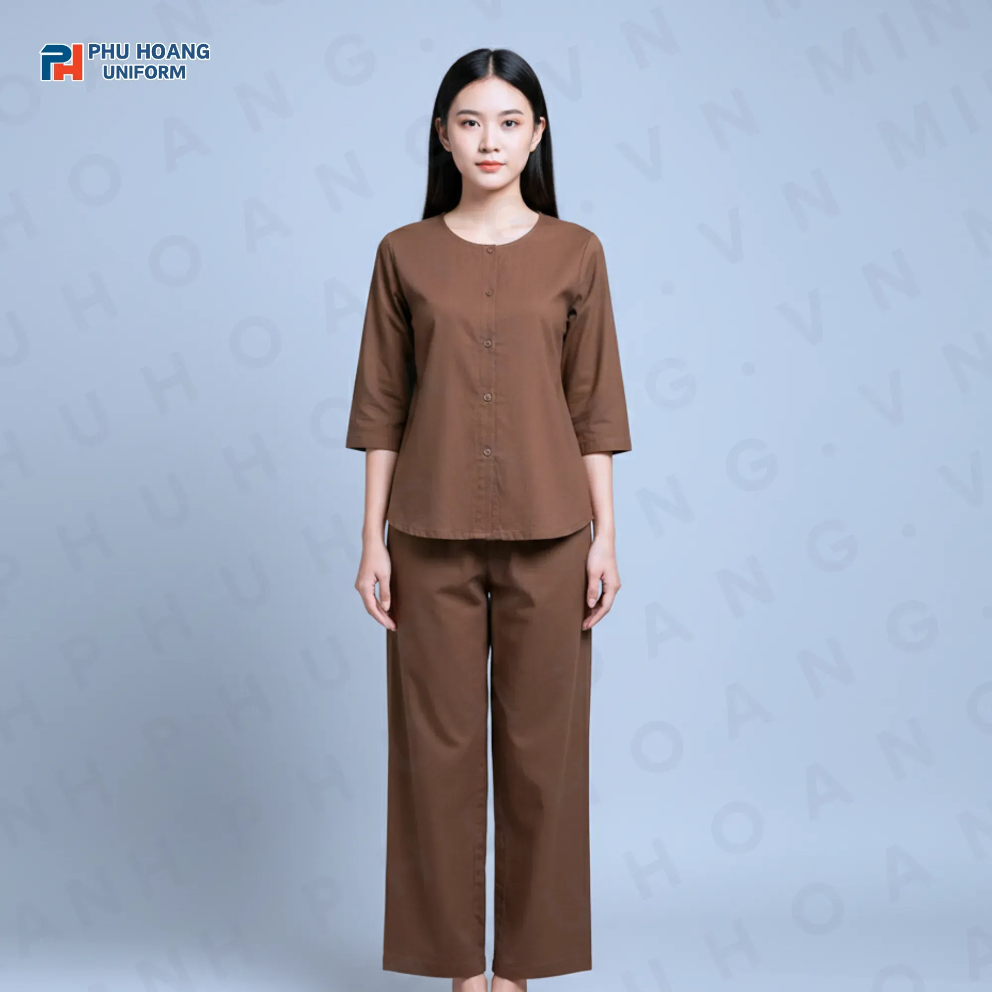 BỘ ĐỒ BÀ BA MÀU NÂU NHẠT MAY SẴN ST003 là lựa chọn lý tưởng nếu bạn muốn đồng phục mang hơi hướng truyền thống nhưng vẫn nhẹ nhàng, tinh tế và dễ sử dụng. Sản phẩm phù hợp nhiều loại hình dịch vụ, sự kiện và môi trường làm việc. Với chất liệu vải kate, thiết kế truyền thống nhưng tiện dụng, đường may chắc chắn và khả năng tùy chỉnh logo, ST003 xứng đáng là mẫu đồng phục bà ba đáng chọn của Phú Hoàng Uniform.