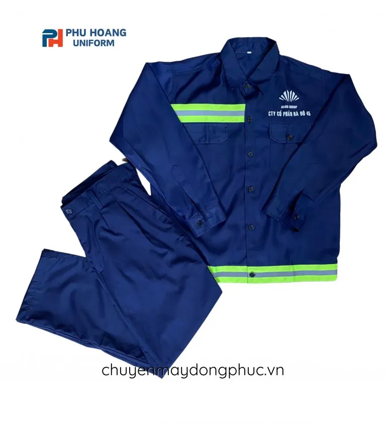 Xanh đậm phối phản quang vàng tạo vẻ khỏe khoắn, nghiêm túc, đồng thời dễ phối với phụ kiện như mũ, găng tay, giày bảo hộ.