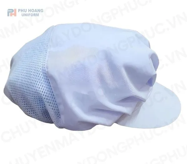 Kiểu dáng: Trùm đầu bao phủ tóc, có vành phía trước để che mồ hôi, dầu bắn; phần sau làm từ lưới thoáng khí giúp thoát hơi nóng; thiết kế đơn giản, dễ đội – không cồng kềnh.