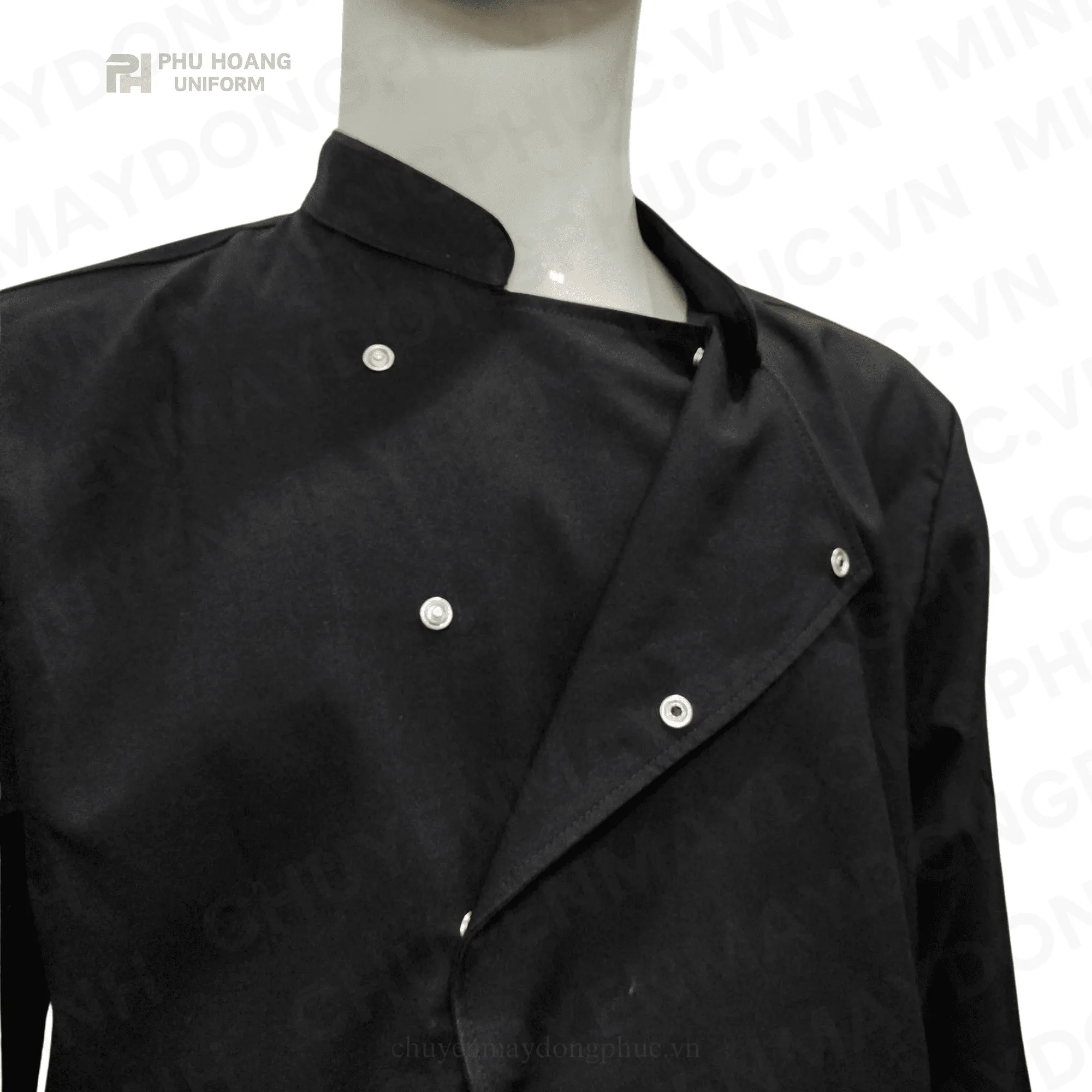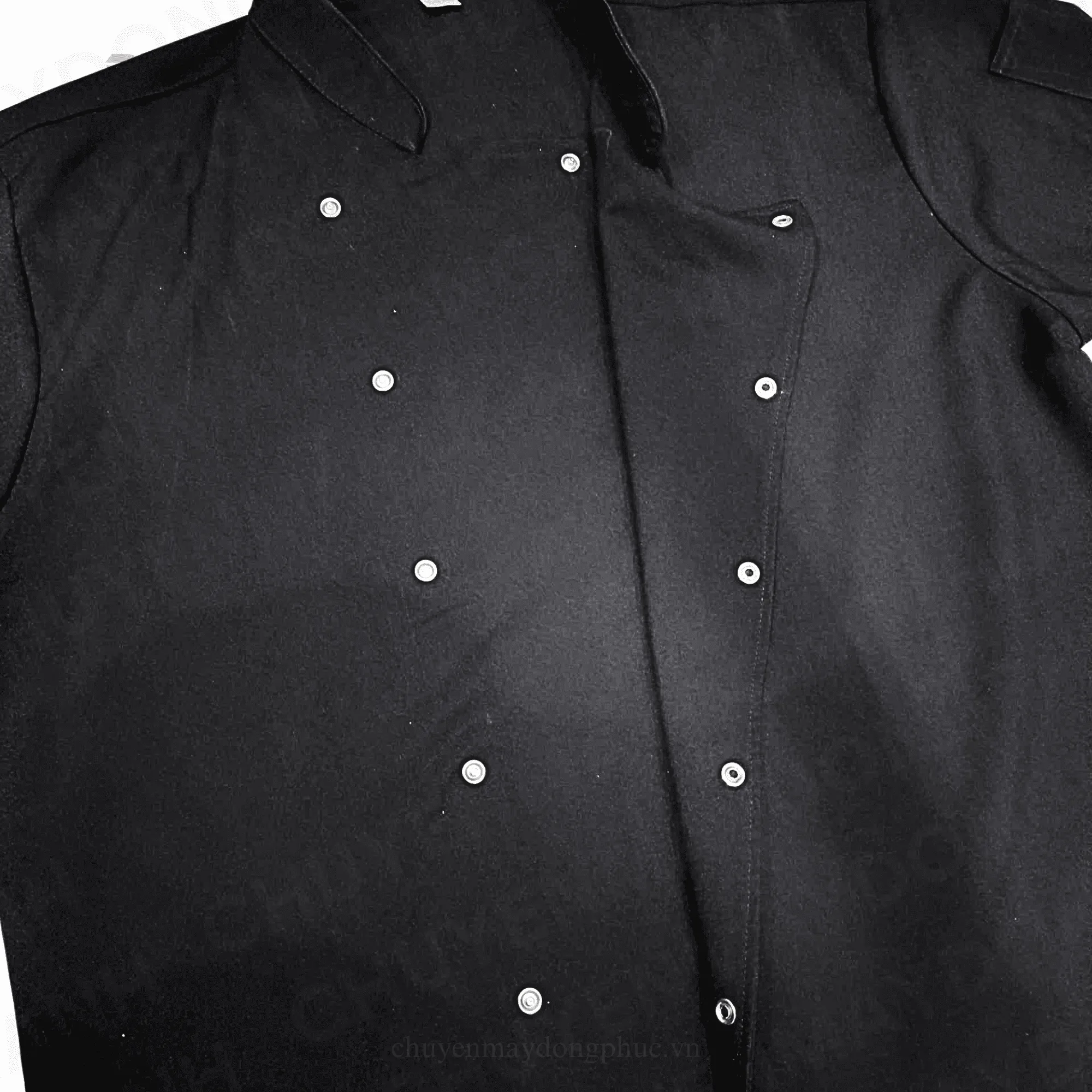 Tên sản phẩm: ÁO BẾP ĐEN NÚT BẤM SB016 (MAY SẴN)