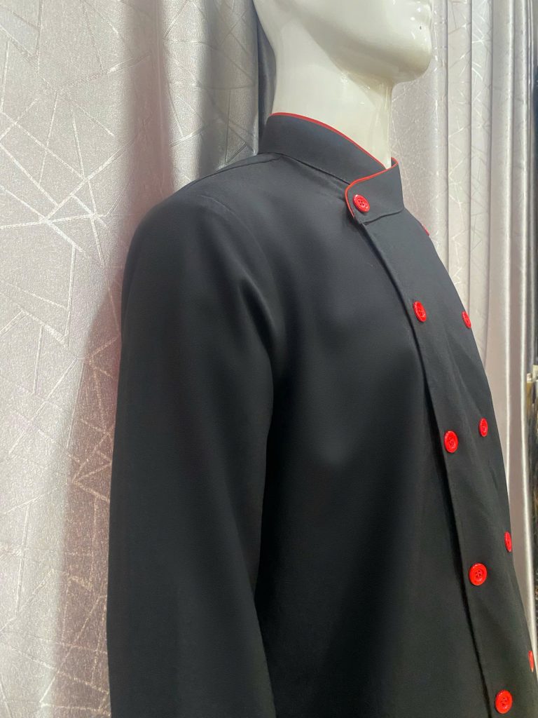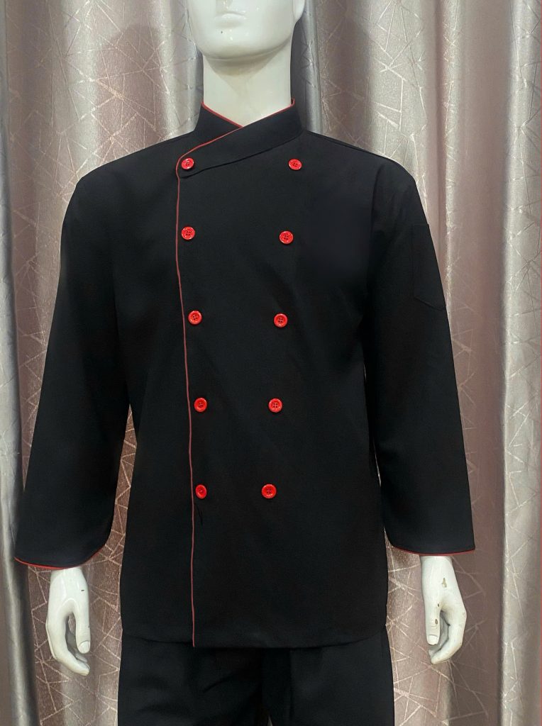 Áo bếp tay dài đen viền đỏ kaki thun không chỉ phù hợp cho đầu bếp chính mà còn được sử dụng rộng rãi cho phụ bếp, nhân viên sơ chế và bếp trưởng. Sản phẩm đáp ứng tốt yêu cầu của bếp nhà hàng Á – Âu, bếp khách sạn, bếp công nghiệp và cả các cơ sở chế biến thực phẩm. Sự linh hoạt trong ứng dụng giúp doanh nghiệp dễ dàng đồng bộ hình ảnh đội ngũ. 🍳🏨
