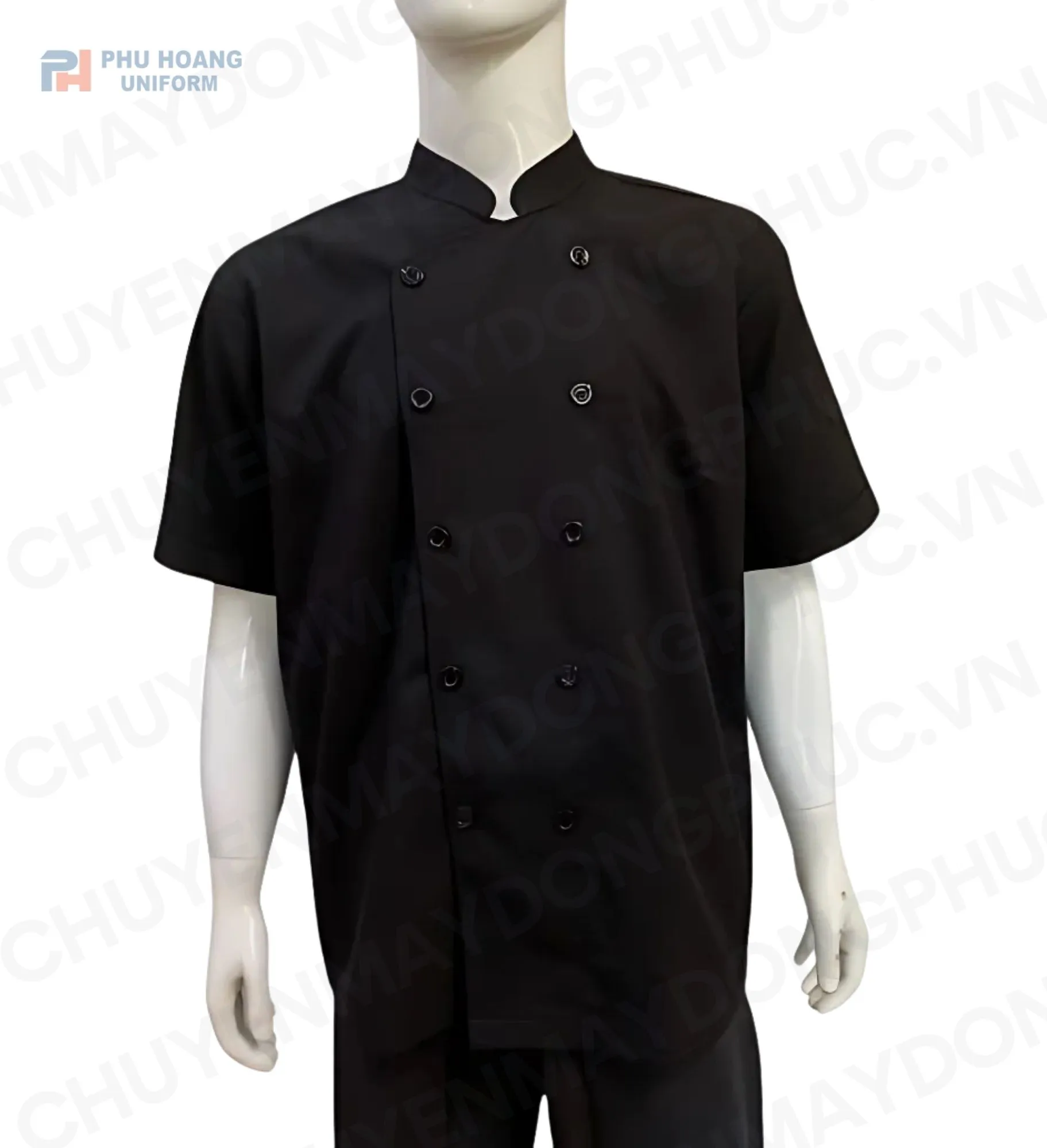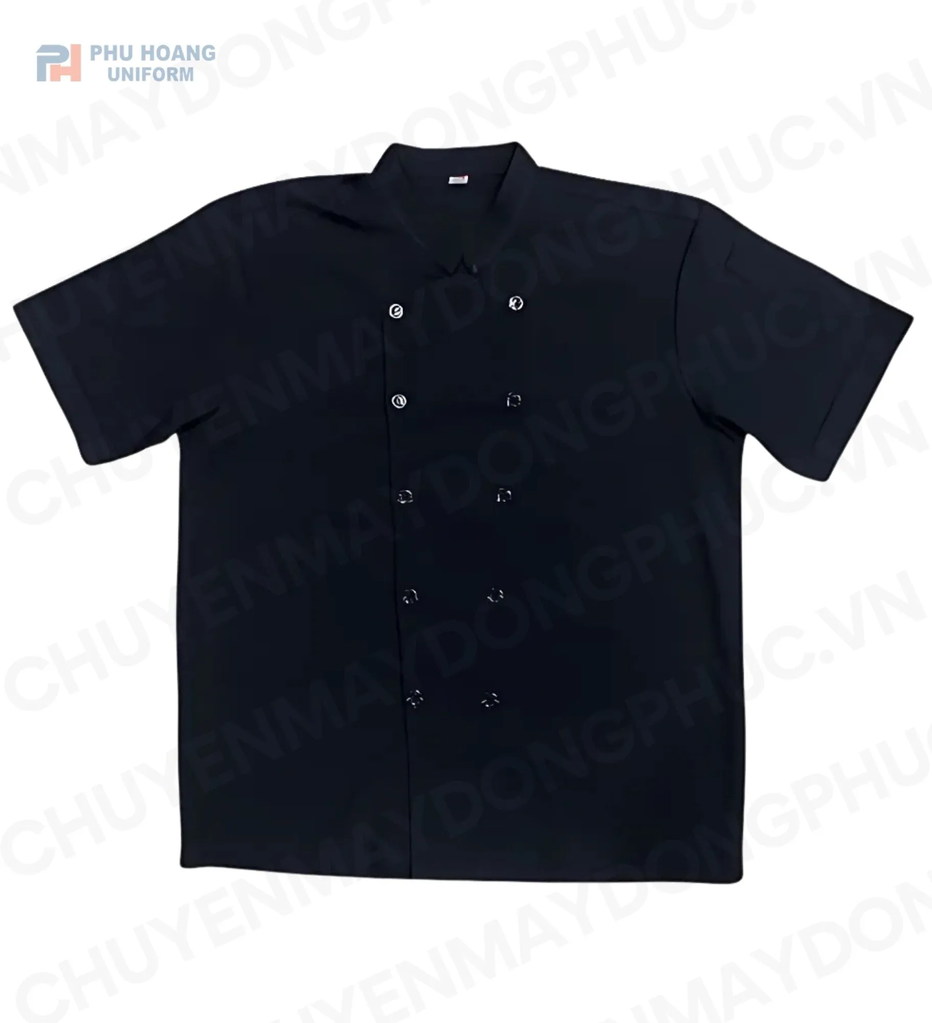 ÁO BẾP KAKI ĐEN TAY NGẮN SB003 (MAY SẴN)