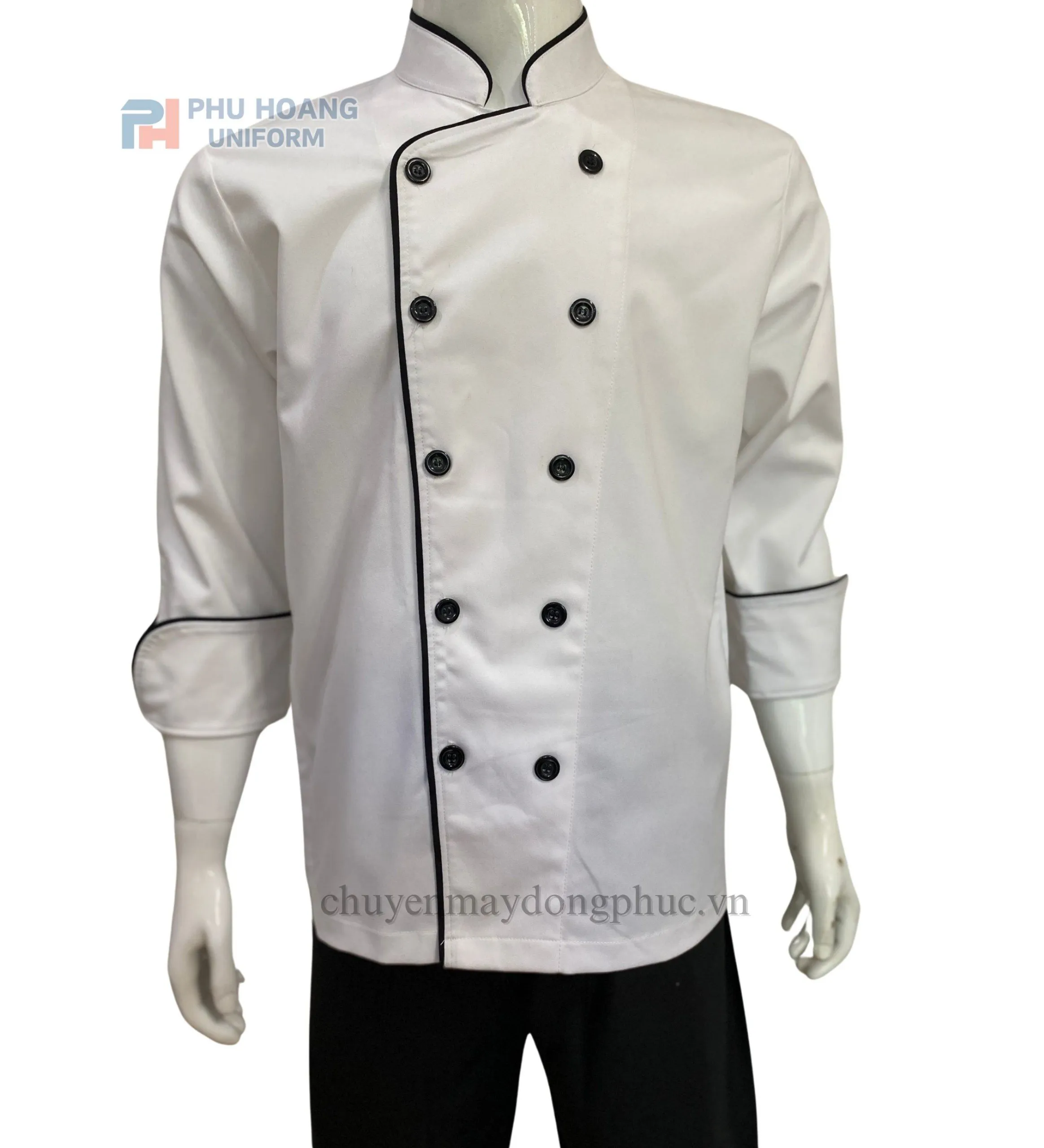 Tên sản phẩm: ÁO BẾP TRẮNG VIỀN ĐEN TAY DÀI