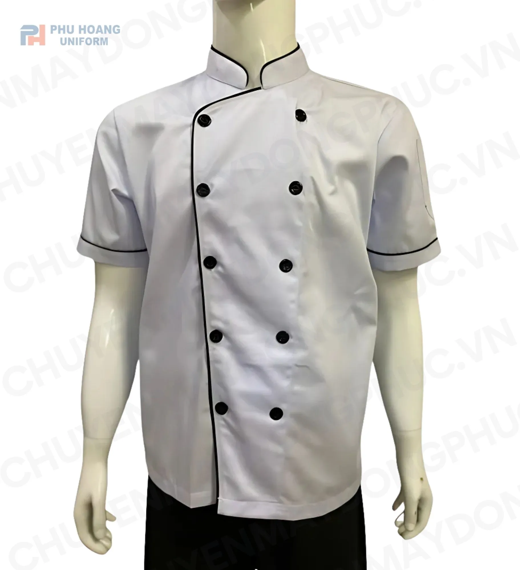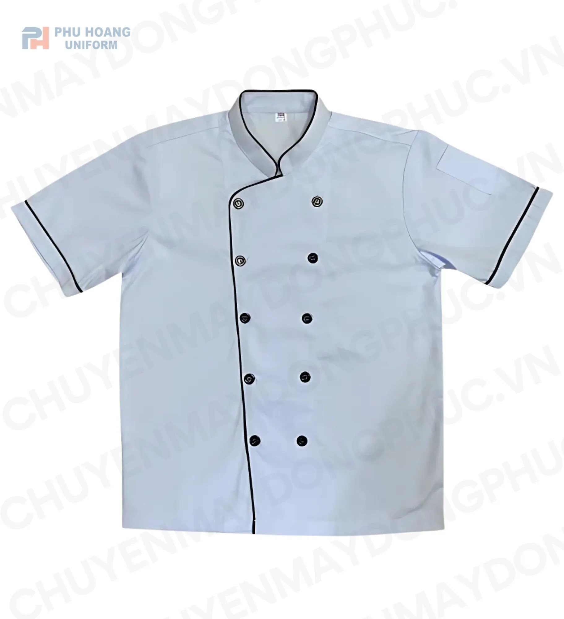 Tên sản phẩm: ÁO BẾP TRẮNG VIỀN ĐEN TAY NGẮN SB001