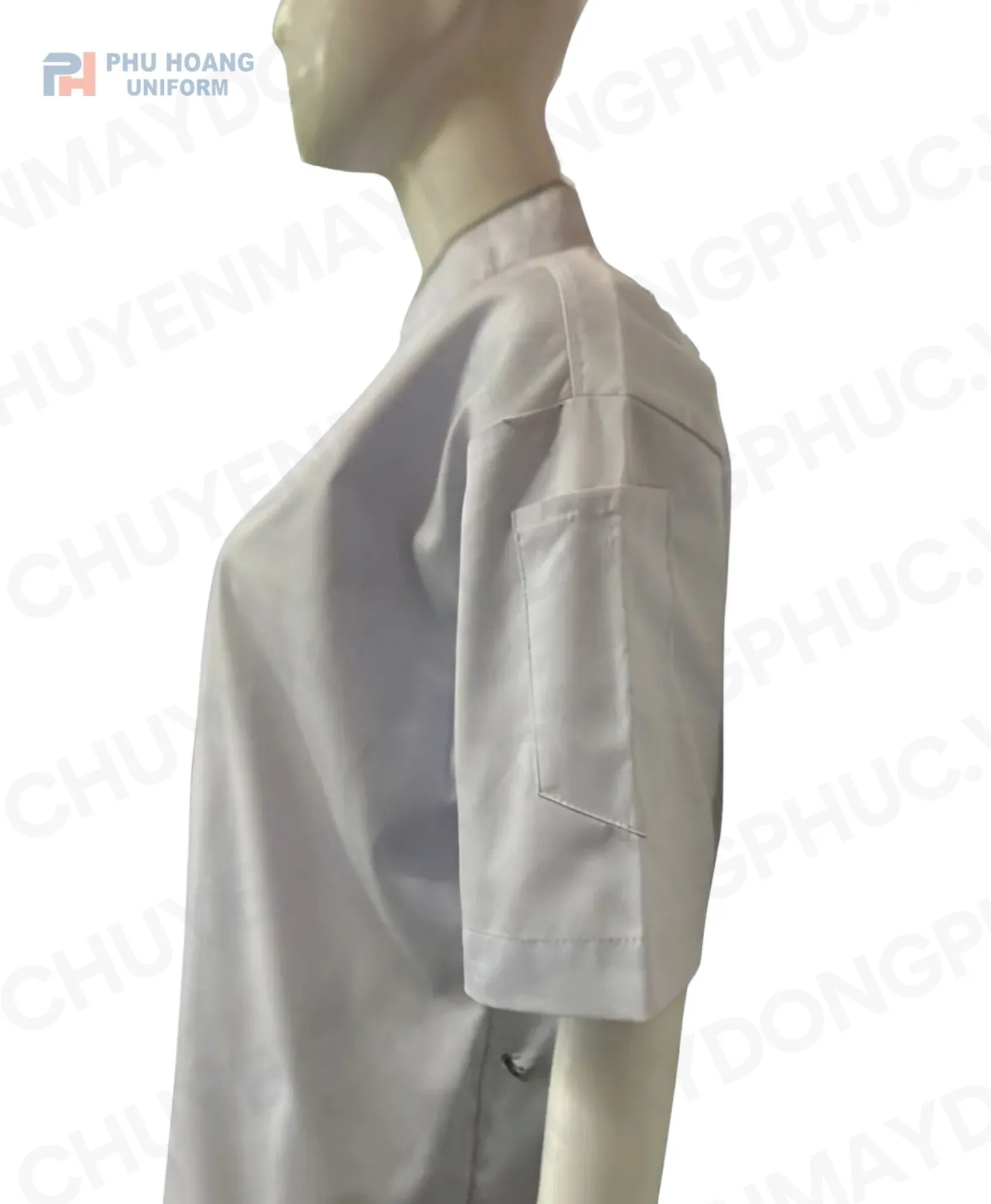 MINH HỌA CHI TIẾT ÁO BẾP KAKI TRẮNG VIỀN ĐEN TAY NGẮN SB001 (MAY SẴN)