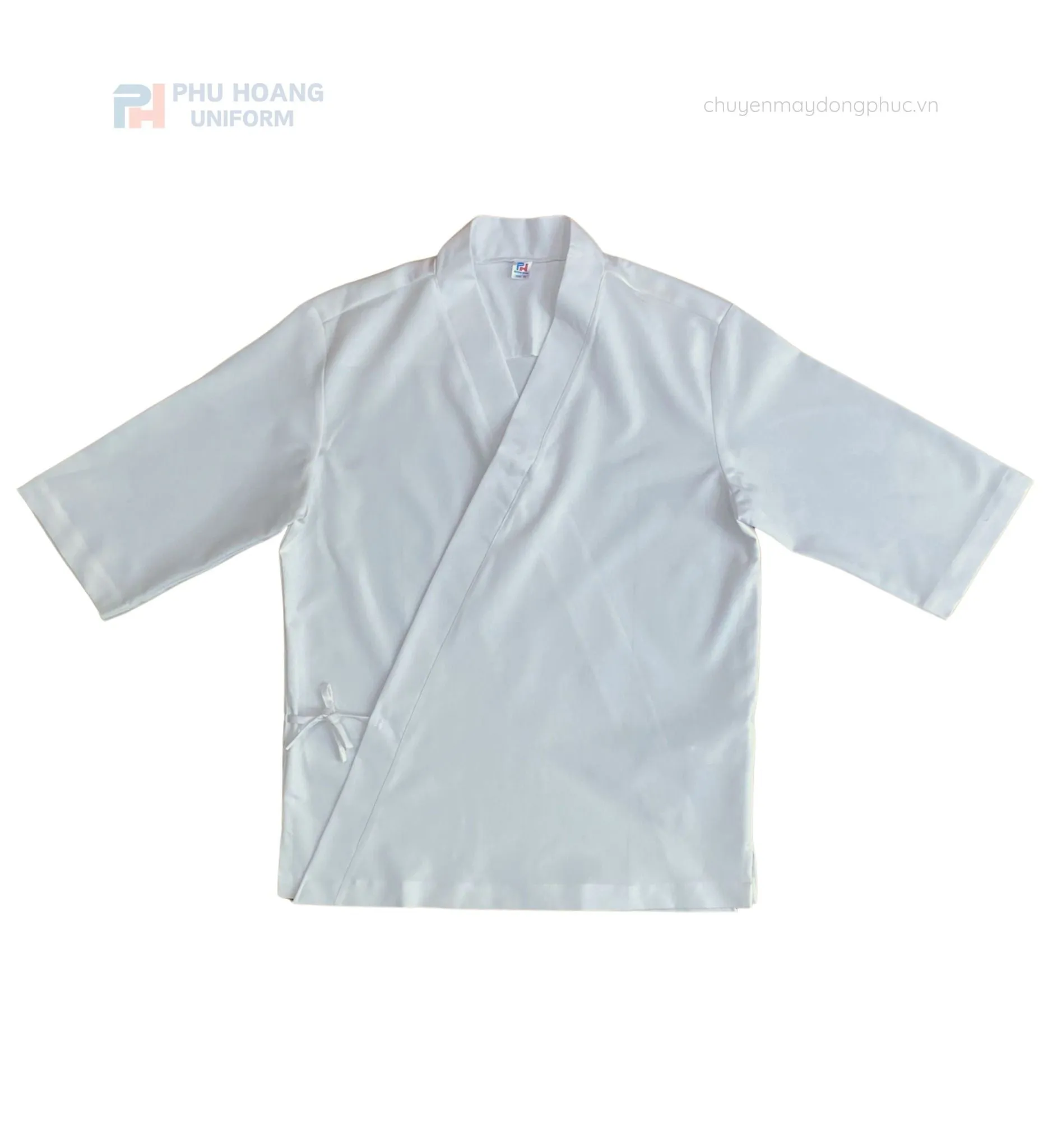 Kiểu dáng: Form rộng thoải mái, cổ nẹp vạt chéo đặc trưng phong cách Nhật Bản. Tay lửng gọn gàng giúp dễ dàng vận động và giữ được sự chỉn chu trong suốt ca làm việc.