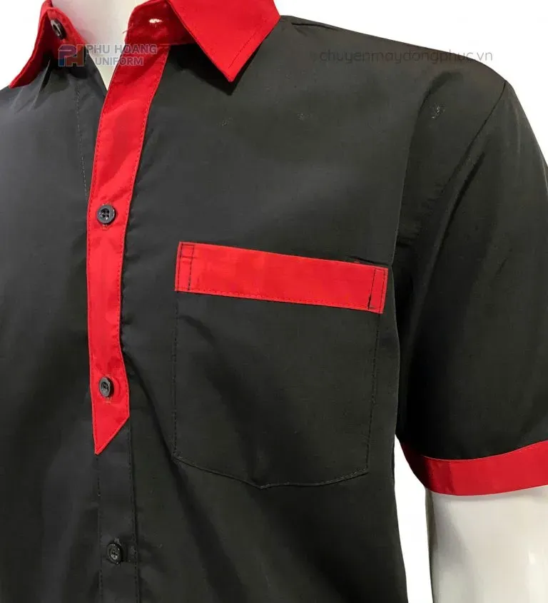Kiểu dáng: Áo cổ trụ hoặc cổ sơ mi, tay ngắn, dáng suông gọn, có đường may chắc chắn – phù hợp với môi trường làm việc năng động, di chuyển liên tục.