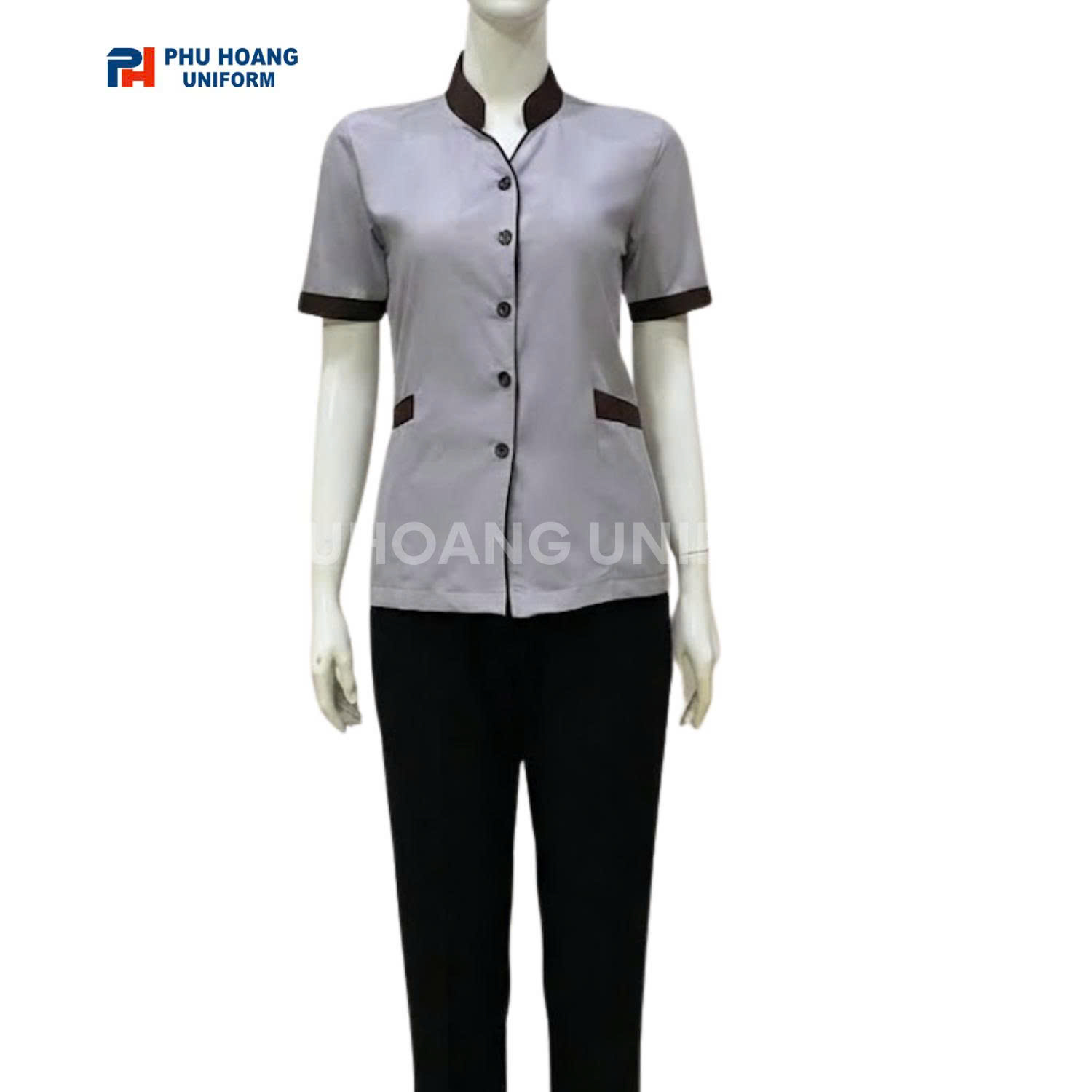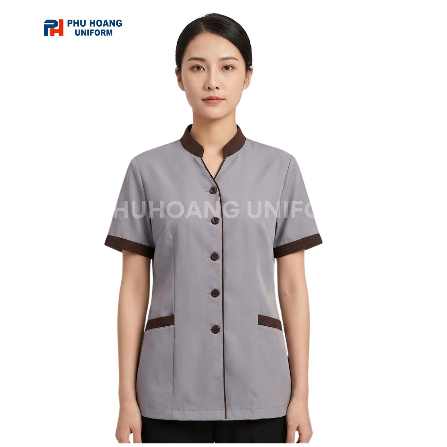 👉 Liên hệ Phú Hoàng Uniform ngay hôm nay để đặt may mẫu Áo tạp vụ xám viền nâu theo số lượng lớn, in/thêu logo theo yêu cầu và nhận báo giá ưu đãi nhất!