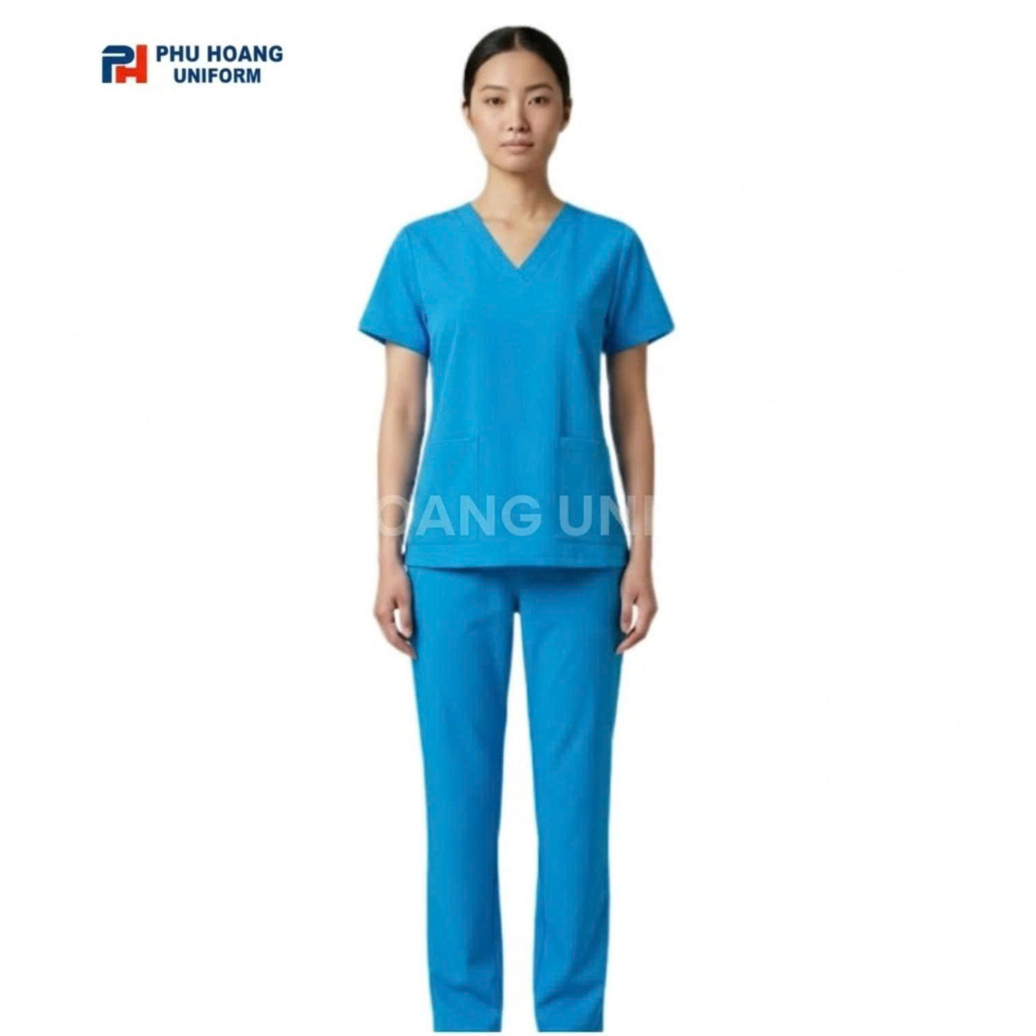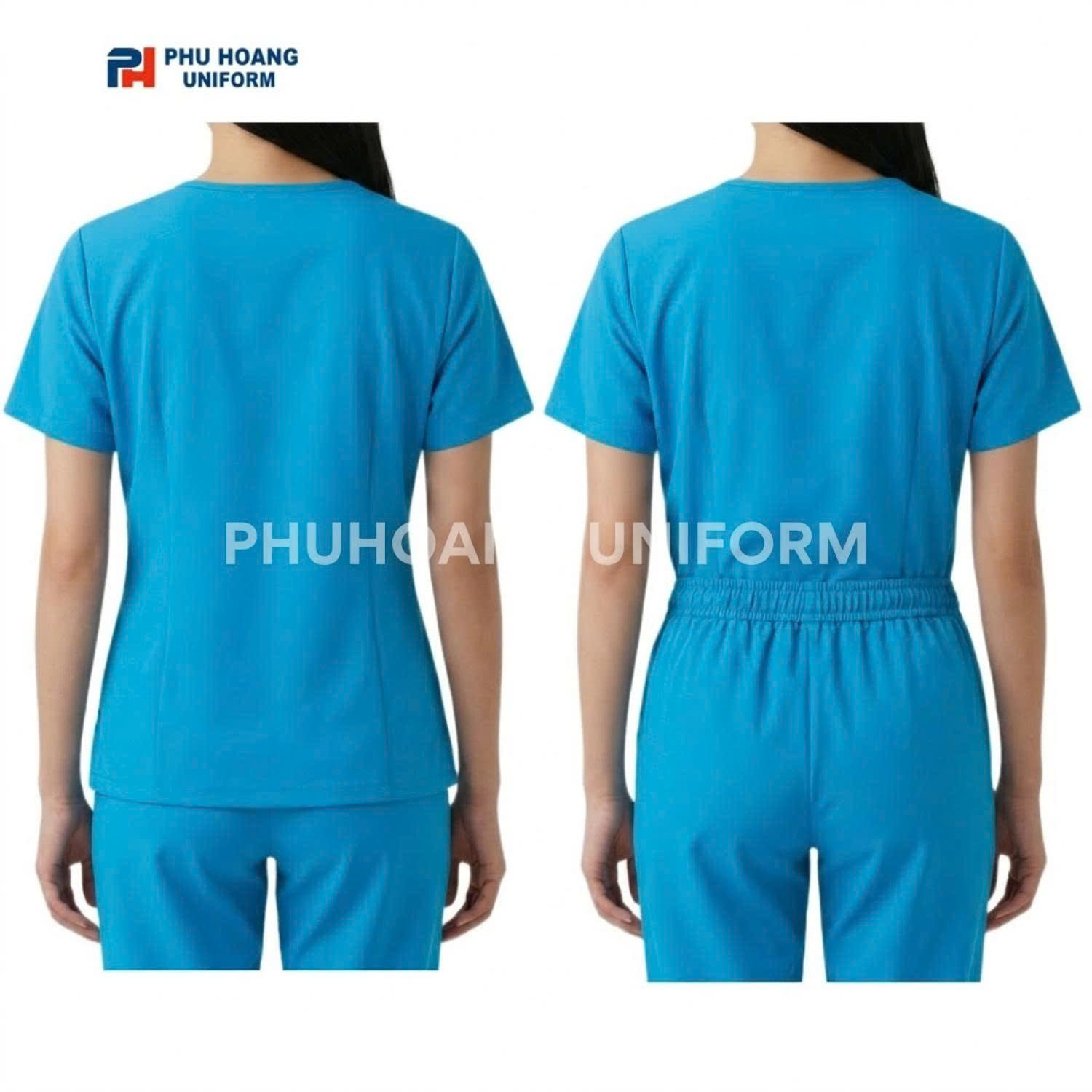 Bộ đồ spa cổ tim màu xanh sáng được thiết kế với form dáng đơn giản nhưng rất tinh tế. Áo có độ rộng vừa phải, không quá bó sát nhưng vẫn giữ được sự gọn gàng và thanh lịch cho tổng thể trang phục. Điều này giúp nhân viên spa luôn trông chỉn chu và chuyên nghiệp trong suốt quá trình làm việc.