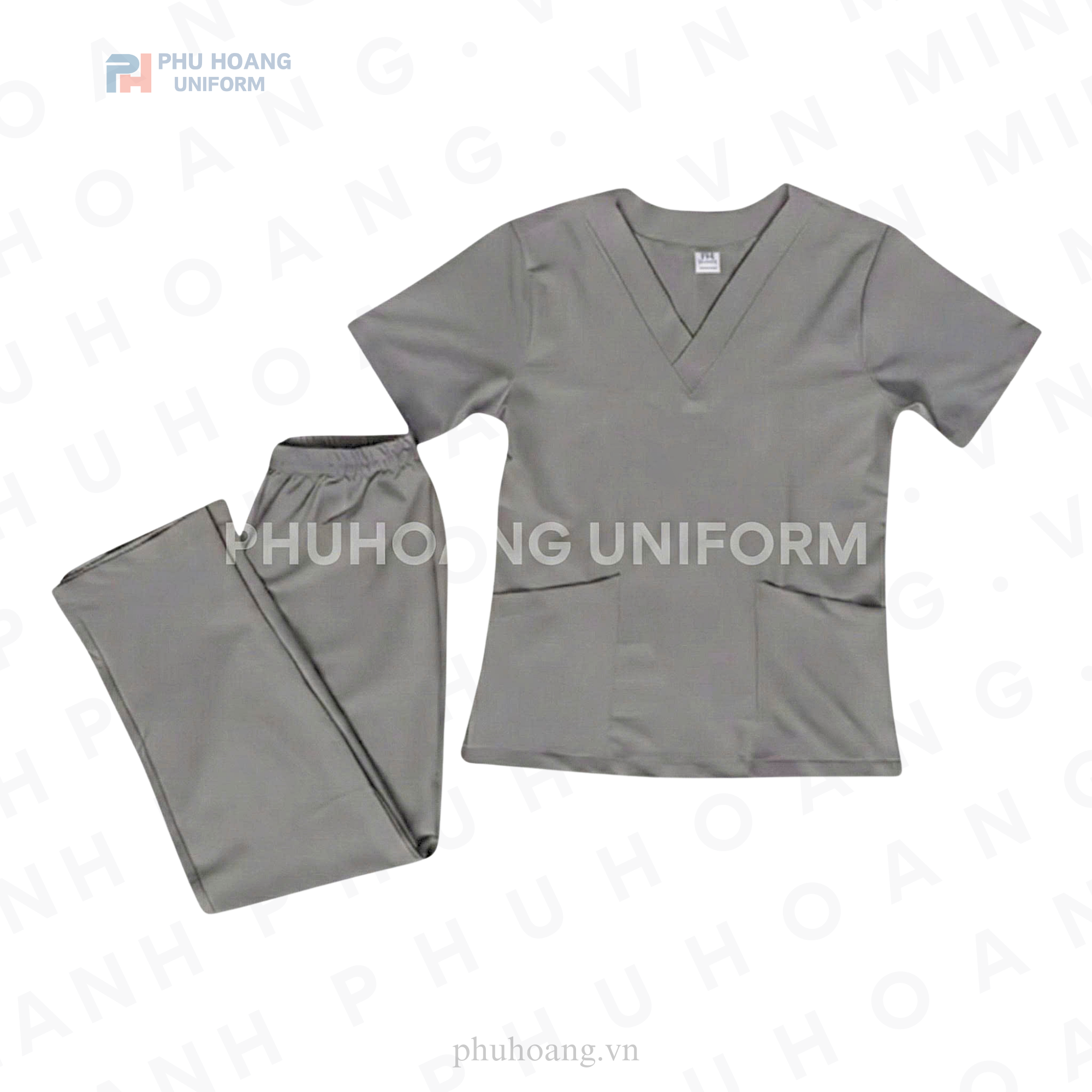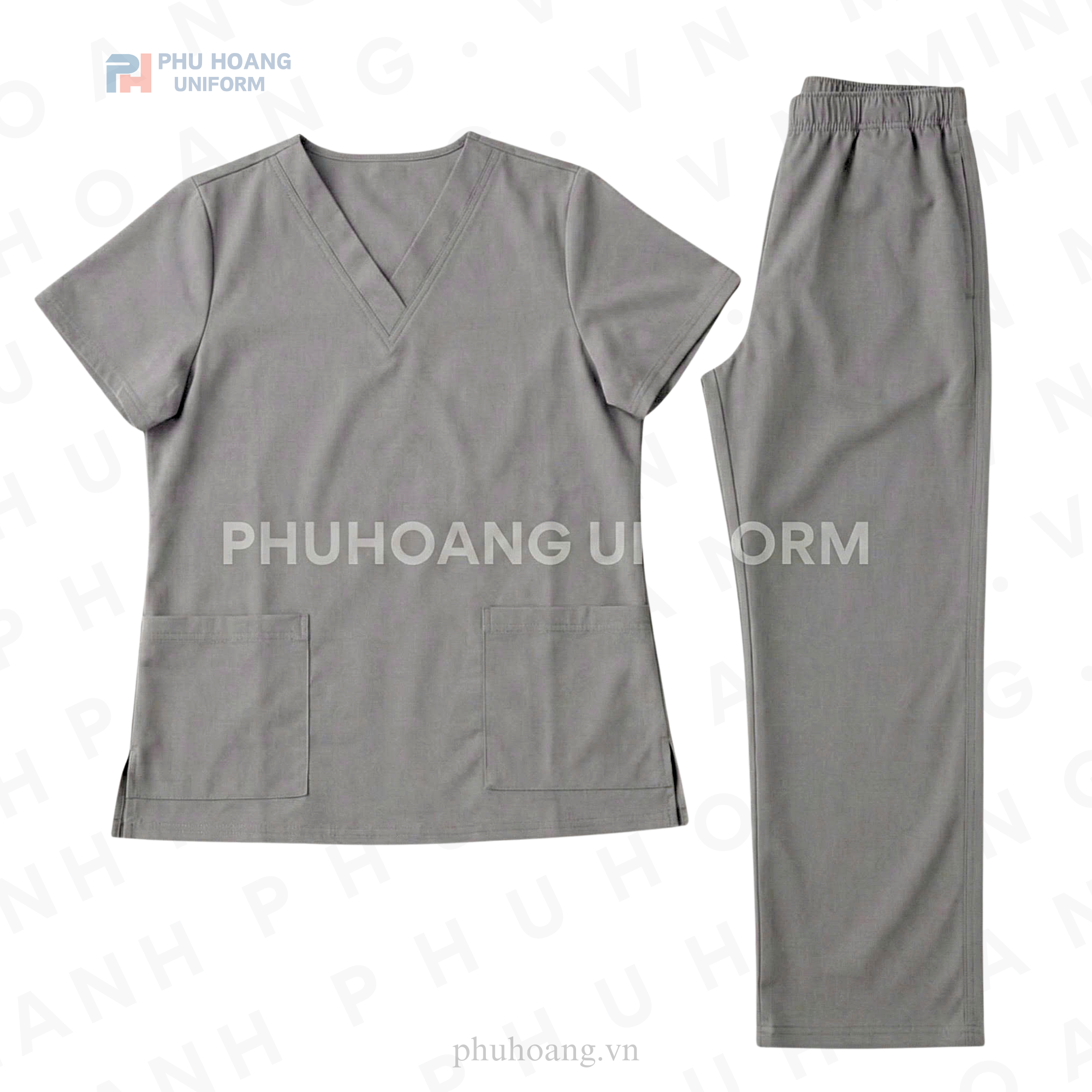 🩺 BỘ SCRUBS CỔ TIM MÀU XÁM – GIẢI PHÁP ĐỒNG PHỤC Y TẾ HIỆN ĐẠI, CHUYÊN NGHIỆP