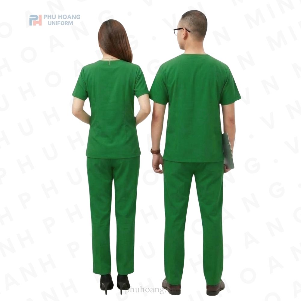 Form dáng của bộ scrubs nam xanh lá nhạt được thiết kế nhằm mang lại sự thoải mái tối đa cho người mặc. Áo có độ rộng vừa phải, không quá bó sát nhưng vẫn giữ được vẻ ngoài gọn gàng và lịch sự.