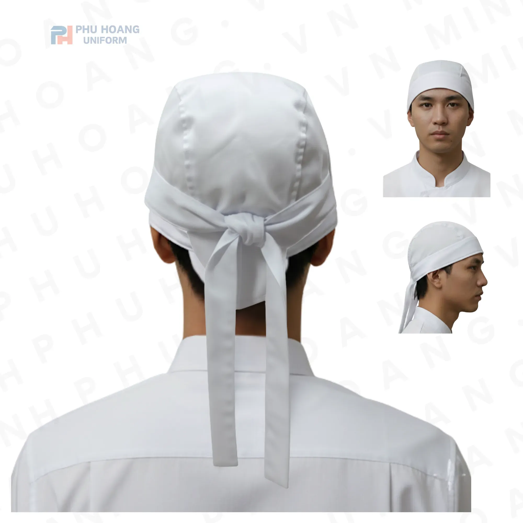Phần dây cột sau của nón được thiết kế tinh tế, giúp điều chỉnh kích thước dễ dàng để ôm sát đầu một cách thoải mái nhất. Thiết kế này mang lại cảm giác nhẹ nhàng, không gây bí hay khó chịu khi đội lâu. Đặc biệt, kiểu cột sau giúp người đội dễ dàng tháo ra giặt, thay thế hoặc điều chỉnh khi làm việc trong nhiều giờ liên tục – một yếu tố rất được các đầu bếp chuyên nghiệp đánh giá cao.