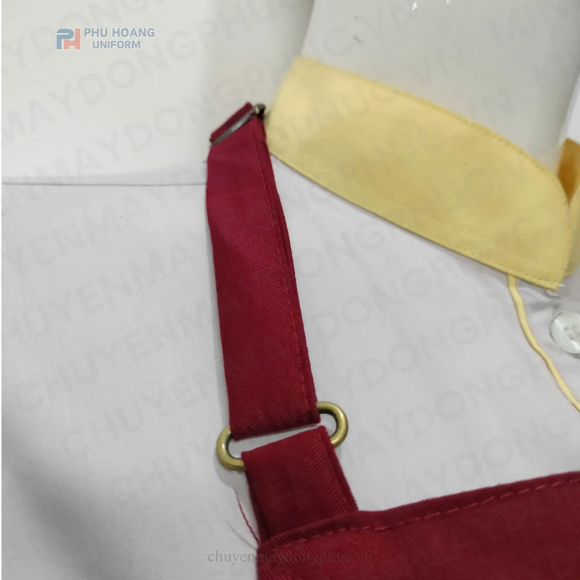 Đặc biệt, vải kaki màu đỏ đô được nhuộm bằng công nghệ cao, giúp bền màu, không phai khi giặt nhiều lần, giữ cho tạp dề luôn mới và sáng đẹp trong thời gian dài.