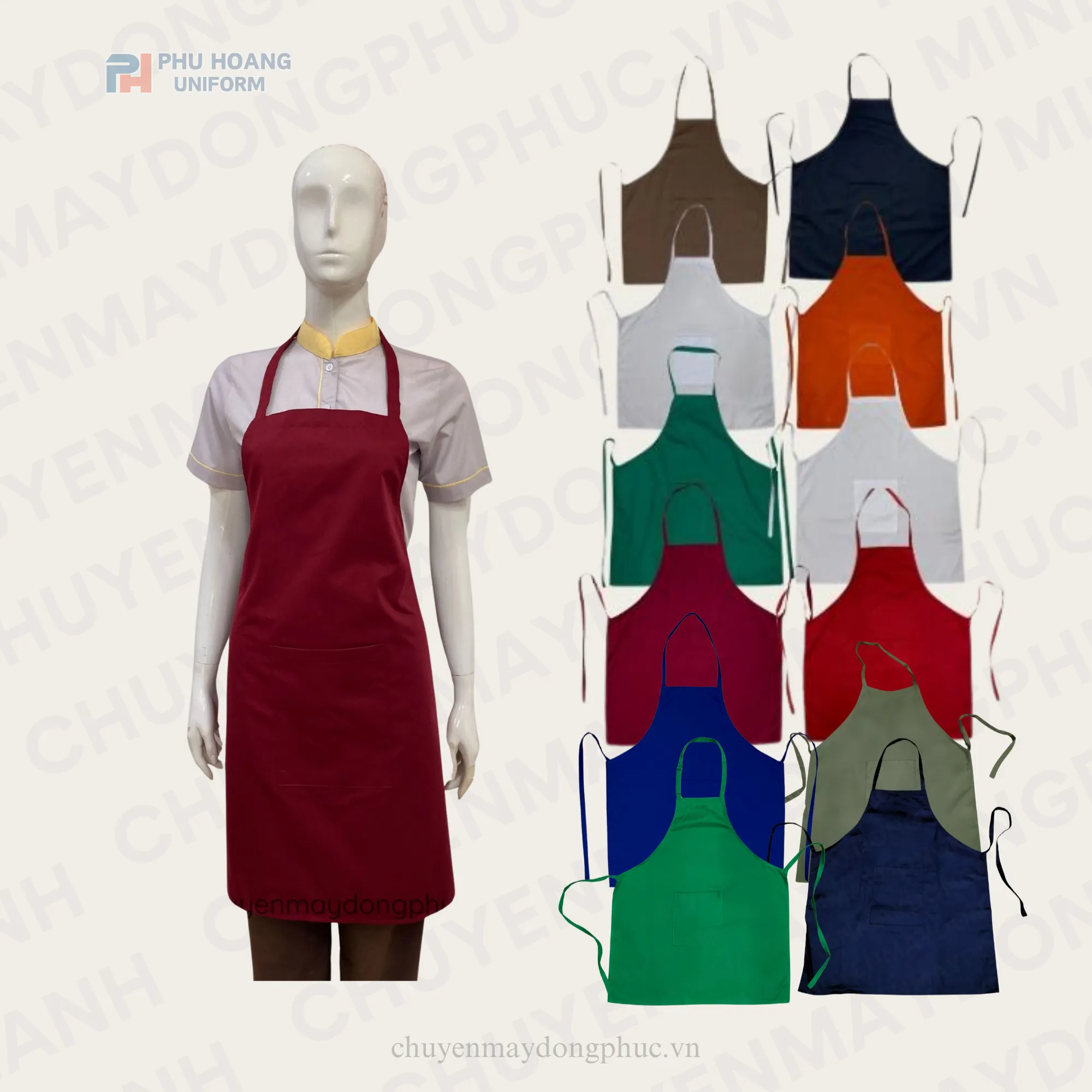 Chất liệu không chỉ bền đẹp mà còn giúp tạp dề đỏ đô giữ được sự sang trọng dù giặt nhiều lần. Đây là lựa chọn lý tưởng cho những thương hiệu muốn xây dựng hình ảnh cao cấp, lịch lãm và ấn tượng.