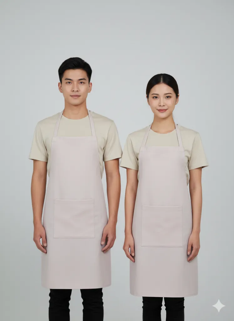 ✔️Hình ảnh nhân viên chuyên nghiệp, trang nhã: Đồng phục tạp dề kem-be giúp nhân viên trông gọn gàng, lịch sự mà vẫn mang nét thân thiện — rất phù hợp cho các quán café, tiệm bánh hoặc nhà hàng.