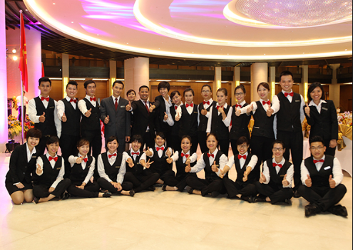 Đội ngũ nhân viên trong bộ đồng phục lịch sự tại một khách sạn