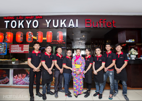 Nhà hàng Nhật với kiểu đồng phục Kimono điển hình trứ danh được may từ các chất liệu vải như: lụa, kate, phi bóng, phi lụa…