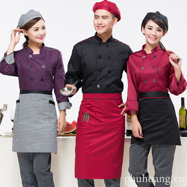 Áo đầu bếp màu trắng, màu đỏ đô và màu đen luôn có sẵn tại công ty Phú Hoàng