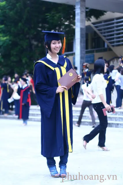 Bộ đồng phục áo tốt nghiệp của Phú Hoàng bao gồm: áo choàng, nón tốt nghiệp, túi càn khôn...